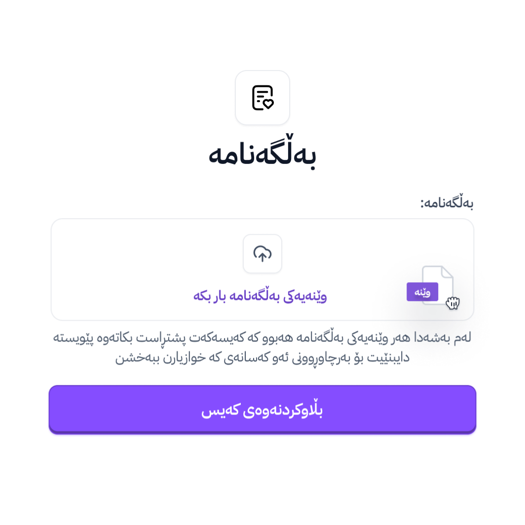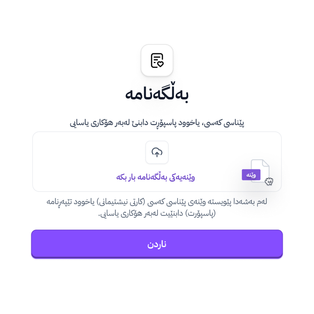 بــــــــــــــــــــــــــــــــــــــــــۆ تــــــــــــاكەكەس تــــــــێپەڕنــــــــامە و كــــــــــــارتی نیشتیمانی بـــــــــــۆ ڕێكـــخراوەكانیش بــــــــــــــــــــەڵگەنامەكان.